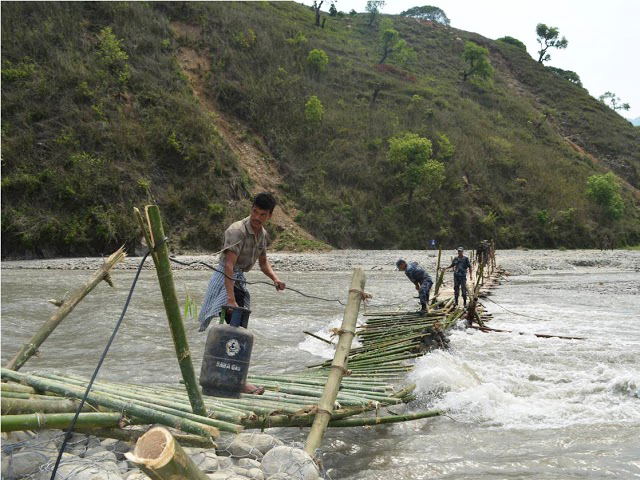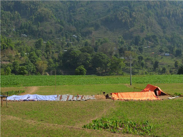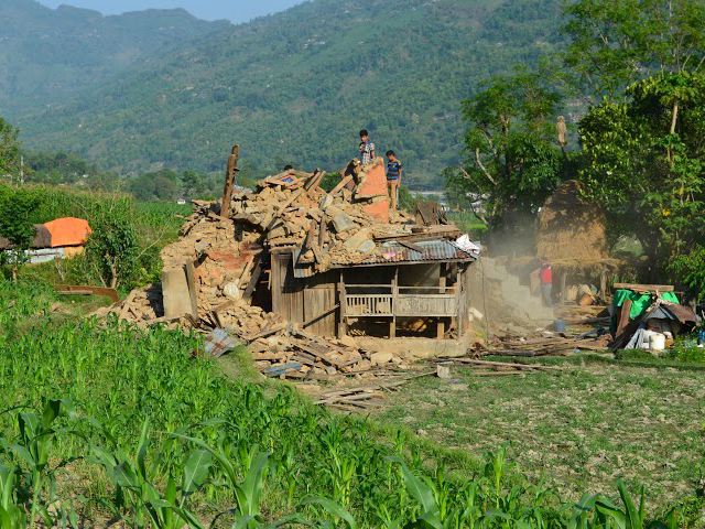 I had a chance in the morning to get out and survey some of the destruction along with a few of our guides. Most of them lived on the other side of the river and a makeshift bridge had put in place that permitted a dangerous river crossing. Everybody in the villages has set up tarps to live under and tried to pull what belongings they can from their house. Even the houses that are still standing are so damaged that no one wants to go inside and most of the villagers are thinking how to pull down these houses so that children won’t get hurt in the rubble.