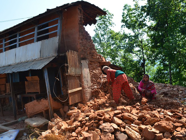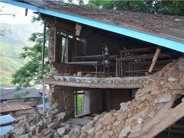 Driving over the mountains we saw that many of the houses had been damaged but arriving in Tripureshwor Village we found almost every house completely destroyed. This probably is the result of both its proximity to the epicenter of the earthquake but also due to the fact the village is situated on a river terrace. River Terraces are deposits composed of sands and gravels which could act amplify the waves of the earthquake. It’s likely that the houses situated on the sides of the mountain suffered less damage since they are essentially on a firmer substrate.